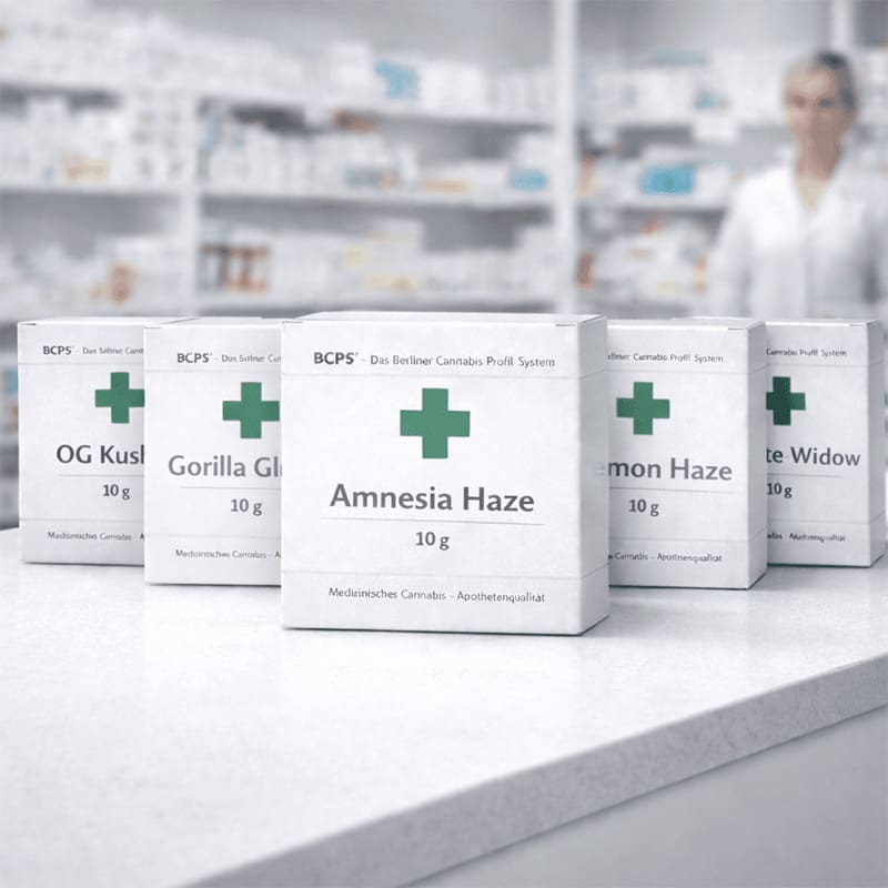 Genau deshalb arbeiten wir nicht mit bloßen Sortennamen, sondern mit standardisierten Wirkprofilen. Nachvollziehbar, medizinisch einordbar und auf die Berliner Versorgung abgestimmt.